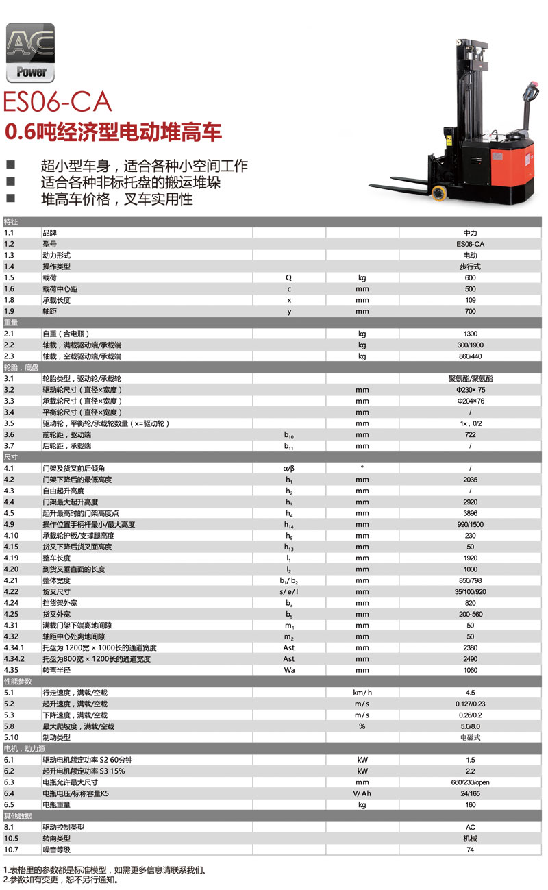 0.6噸經(jīng)濟型電動堆高車ES06-CA