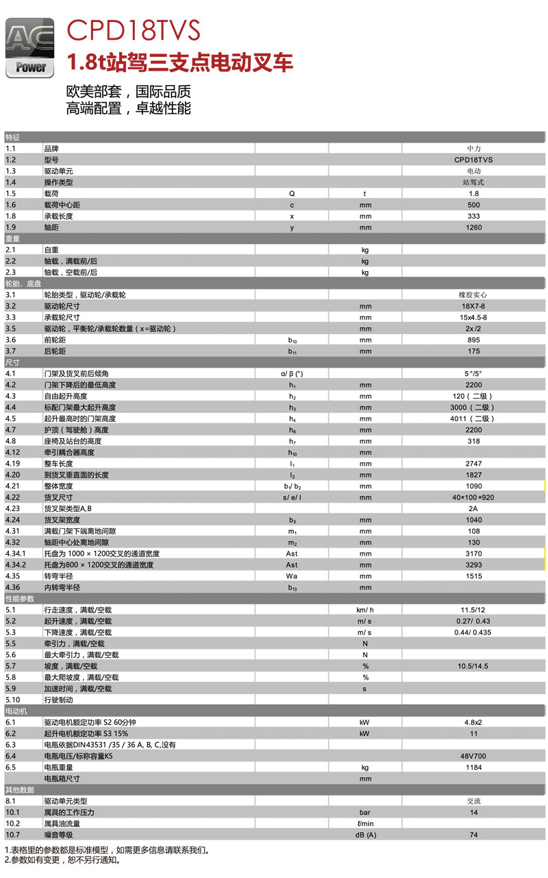 中力電動叉車,1.8噸站駕式三支點電動叉車CPD18TVS