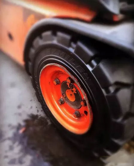 因?qū)嵭妮喬ヌンw為全橡膠構(gòu)成,最大限度地保證了輪胎的耐刺穿性,從根本上消除了工業(yè)車輛在承載運(yùn)行過程中及在惡劣的作業(yè)環(huán)境中的輪胎刺穿隱患。實(shí)心輪胎的負(fù)荷-形變量小、運(yùn)行穩(wěn)定性好,因其耐刺耐撕,無需充氣,避免了頻繁補(bǔ)胎換胎的繁重勞動,可提高車輛的使用率和工作效率,在低速、高效運(yùn)行車輛中,實(shí)心輪胎完全可以替代充氣輪胎。